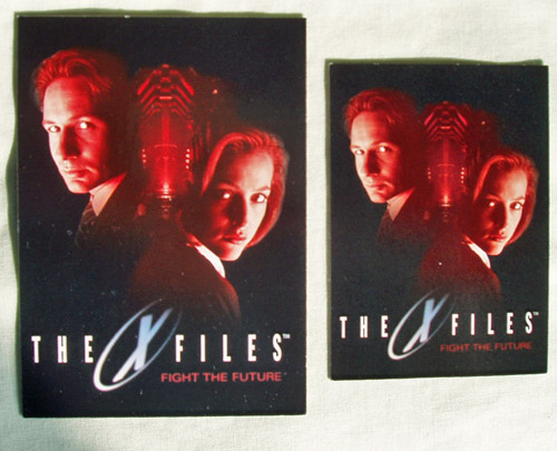 There are 2 promo cards both the same picture of Mulder and Scully but one is an over sized card.