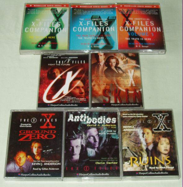 There are 11 audio tapes adapted from X-File episodes. 4 adapted from the X-File novels written by K. Anderson and B. Mezrich. And 3 that closely follow the Unofficial X -Files Companion books 1 and 2.