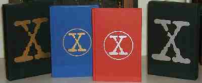 My favourite 2 books (for looks if not content) are the specially slipcased and bound copies of Ground Zero and Ruins. Ground Zero is bound in red cloth on the front is a silver X in a circle. The writing on the spine is also in silver. The slipcase is black cloth with a large silver X on both sides. Inside it reads.