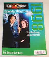 There are 6 'official' X-files calendars and 3 desk diaries, also many unofficial ones. I have official ones for 1996, 1997, 1998, 1999, 2000, 2001 and 2002. The pictures are all taken from episodes of the programme and publicity shots. The 1996, 1997 and 1999 calendars were ok. The 1998 one was awful the shots used were very grainy and not very good. There are 3 desk diaries 1996, 1998 and 1999 these have fact about the show and significant dates all the pictures are in black and white. There are also lots of other calendars I have a 1998 and 1999 David Duchovny calendar, a Radio Times David Duchovny calendar. Lastly I have a limited edition 1999 X-Files calendar which is limited to 2500 copies I have number 0459.