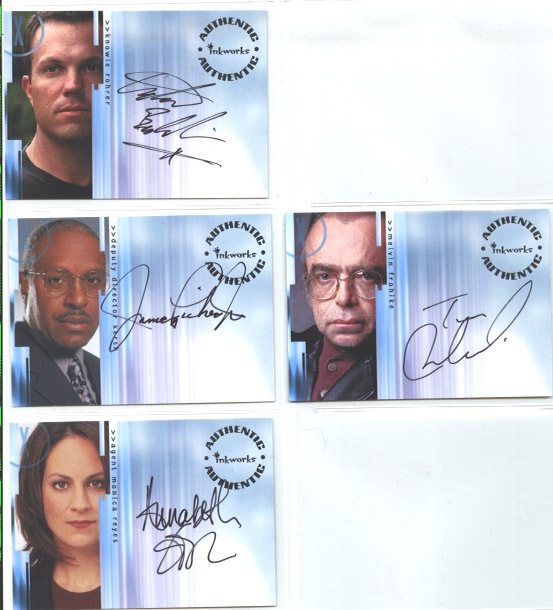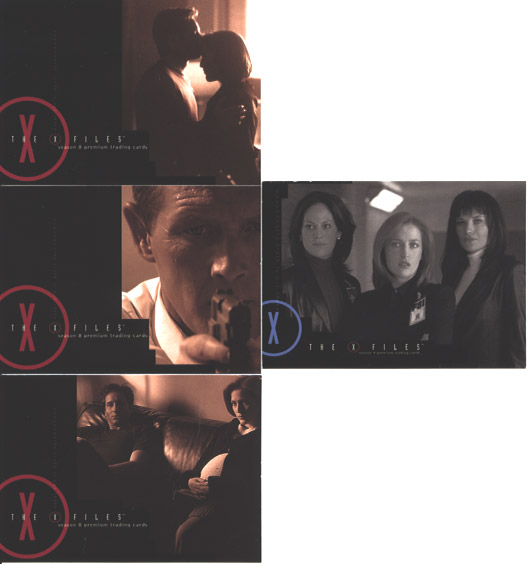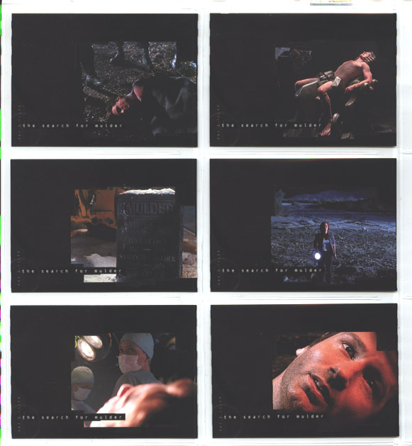 This set comprises: 90 card basic set, 2 piecework cards, 4 autograph cards, 3 believe to understand cards, 3 box loader cards, 1 case loader cards, 6 search for Mulder cards and 3 promo cards.