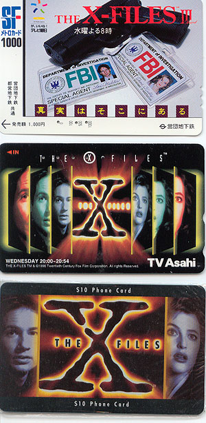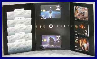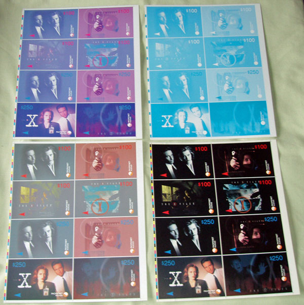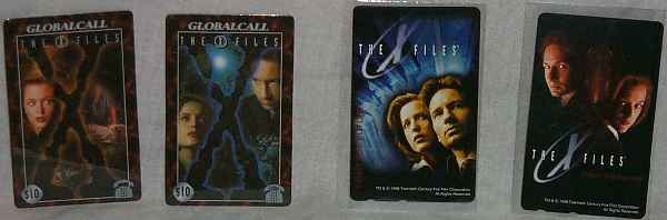 Then I have an Australian set of cards. These are a set of 4, 3 showing scenes from the show and one of the X Files logo all in one folder. This set is limited to 1000 copies world-wide. Then I have one American card that is a pre paid card, showing Mulder and Scullys faces.