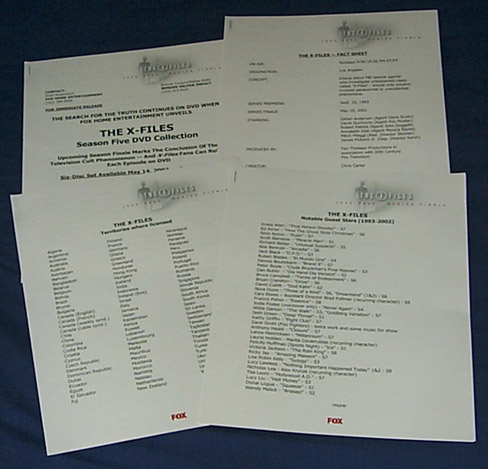 Some of the inserts from the folder: Timeline, Notable Guest Stars, Fact Sheet and Territories Where Licensed.